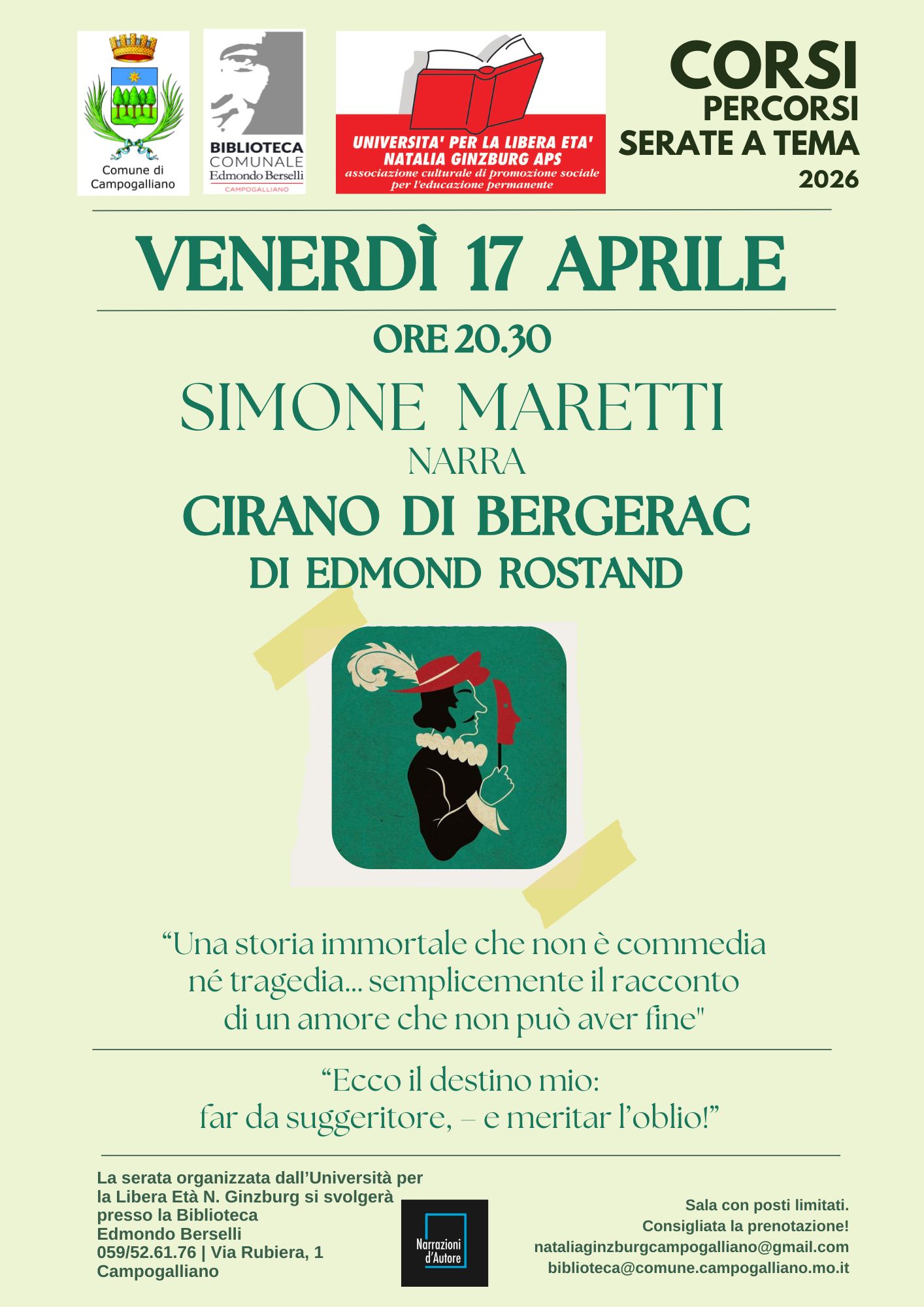 Serata aperta a tutta la cittadinanza, consigliata la prenotazione.